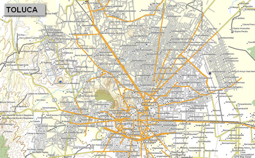 El mapa del estado de ESTADO DE MÉXICO incluye la ciudad de Toluca con calles y avenidas con nombre, mismas