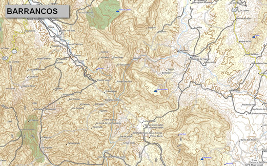 Railroad tracks- Cities - Towns - Neighborhoods - Ranches - Airports - Contour lines every 30 mts - Hill names- Points of interes t- Rivers -