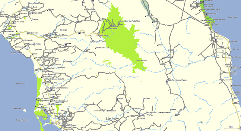 Detailed maps of Baja California, including cities and points of interest such as Mike’s Sky Ranch.
